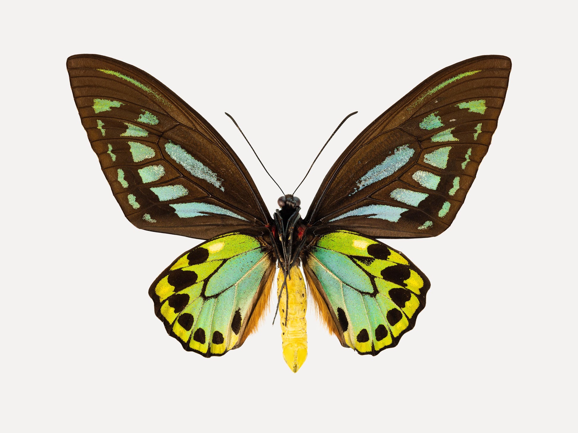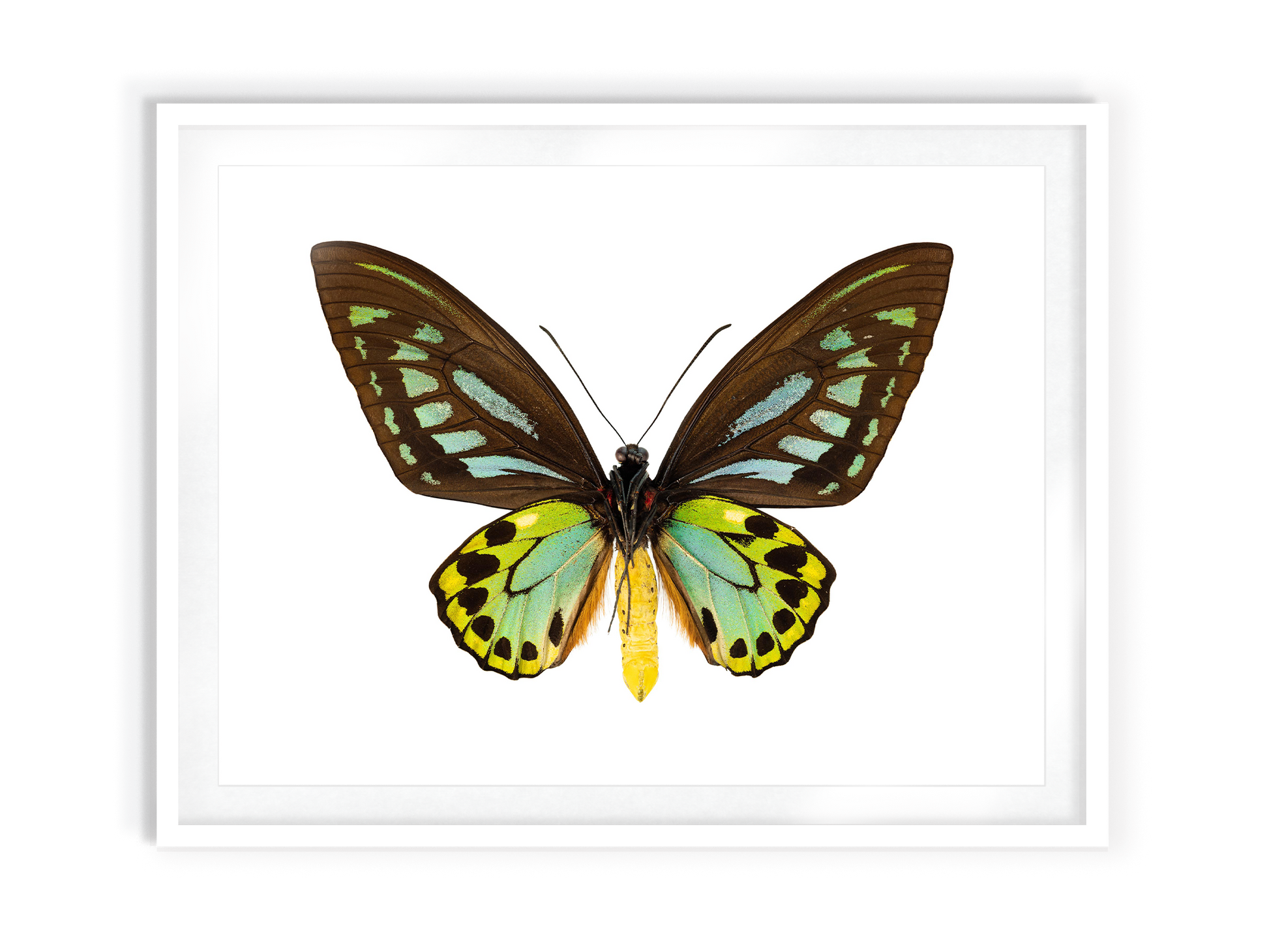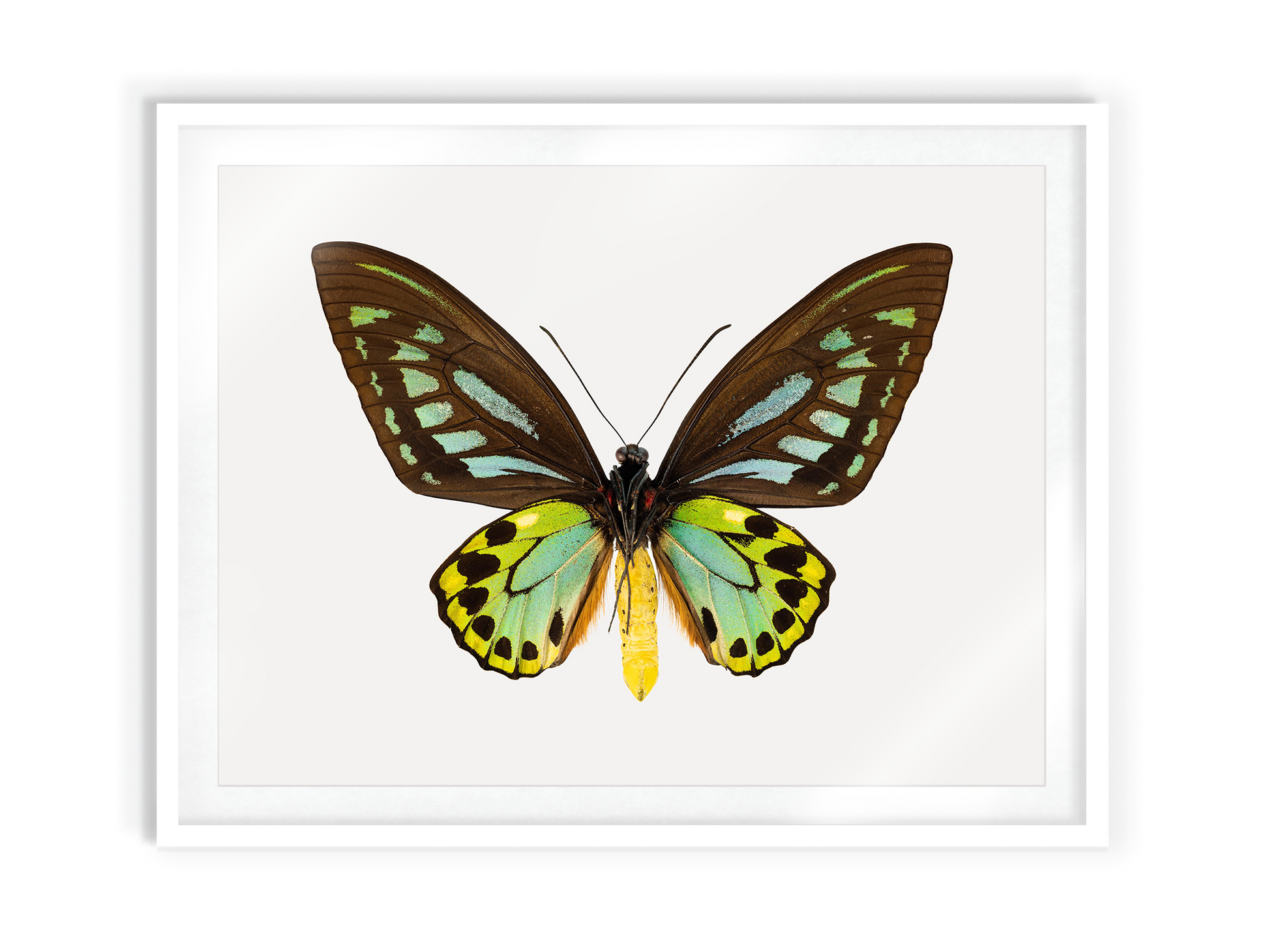 Macro photograph of an Ornithoptera Priamus butterfly specimen from the collection of BioQuipBugs. Printed on premium Fuji Crystal Archive luster paper. Printed and hand packaged in San Diego, CA. A portion of proceeds from the Guimuse Butterfly Collection goes towards the World Wildlife Fund to help protect butterfly habitats.