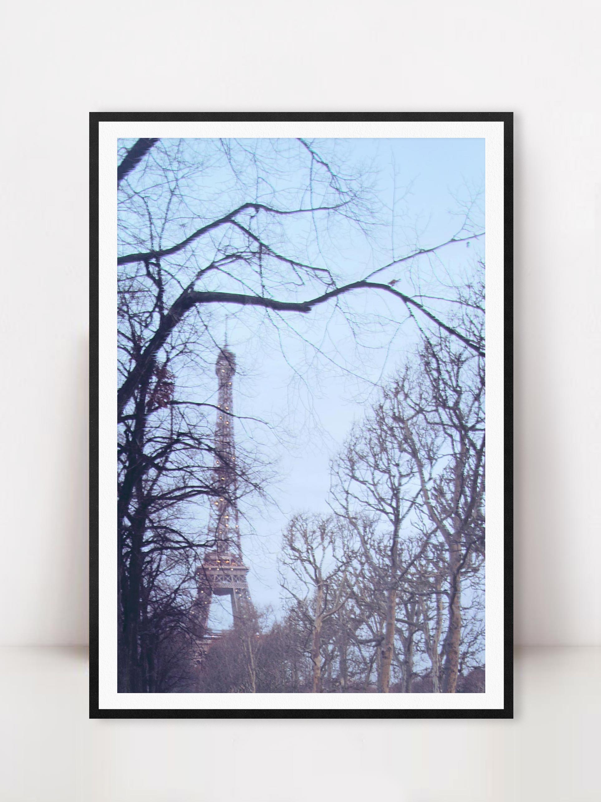 Photograph at dawn of the Eiffel Tower. Printed on premium Fuji Crystal Archive luster paper. Printed, packaged and shipped from San Diego, CA.