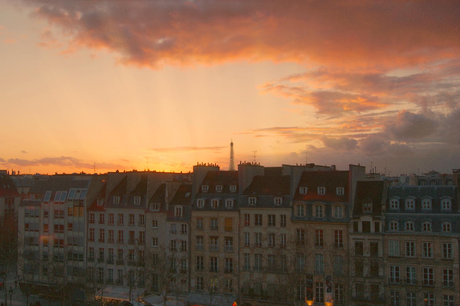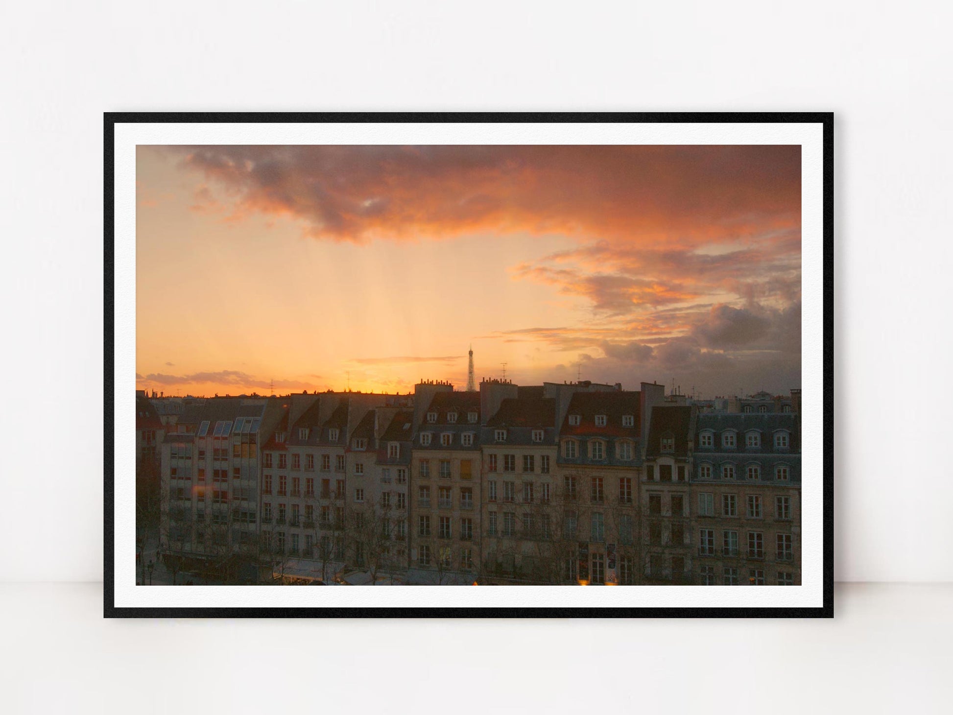 Photograph of the Eiffel Tower at dawn.  Printed on premium Fuji Crystal Archive luster paper. Printed, packaged and shipped from San Diego, CA.