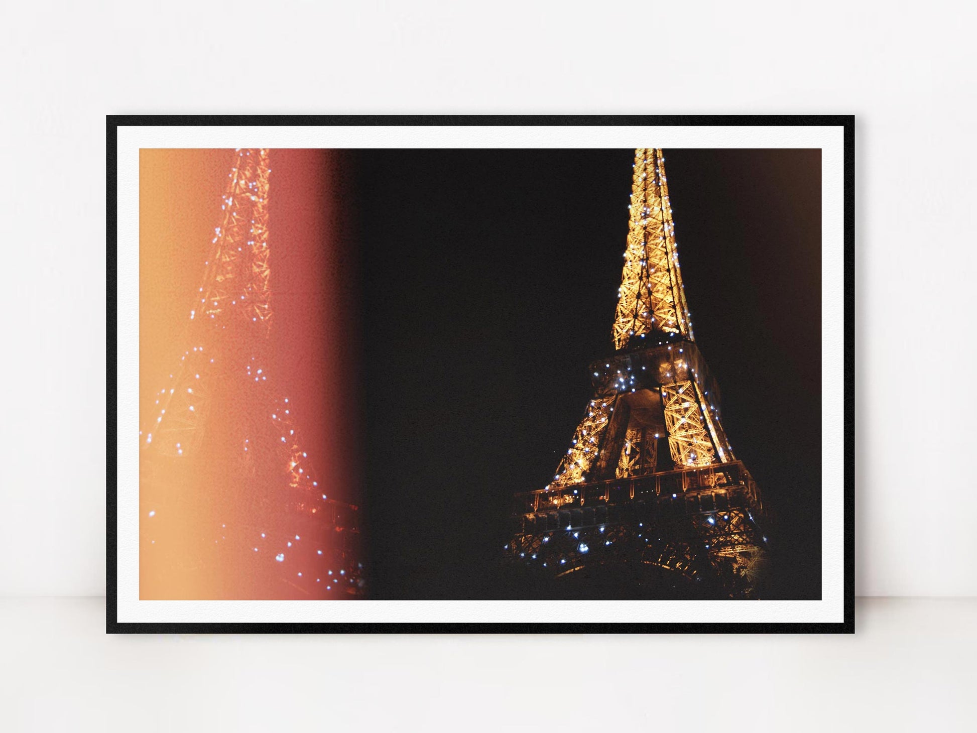 Double exposure photograph of the Eiffel Tower. Printed on premium Fuji Crystal Archive luster paper. Printed, packaged and shipped from San Diego, CA.