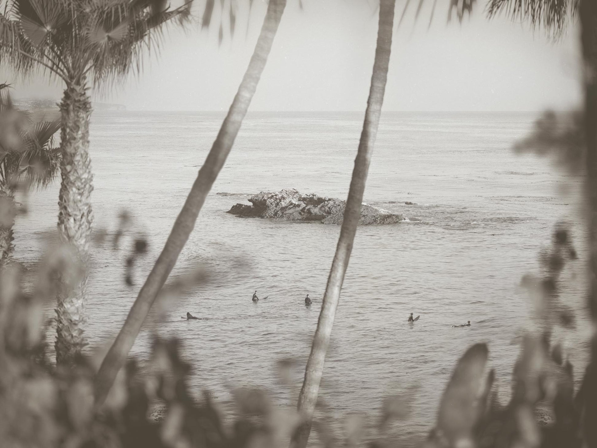 Photograph from an outlook over Laguna beach surfers. Printed on premium Fuji Crystal Archive luster paper. Printed and hand packaged in San Diego, CA. A portion of proceeds from the Guimuse West Coast Collection goes towards the The Ocean Cleanup to help extract plastic pollution from our oceans.