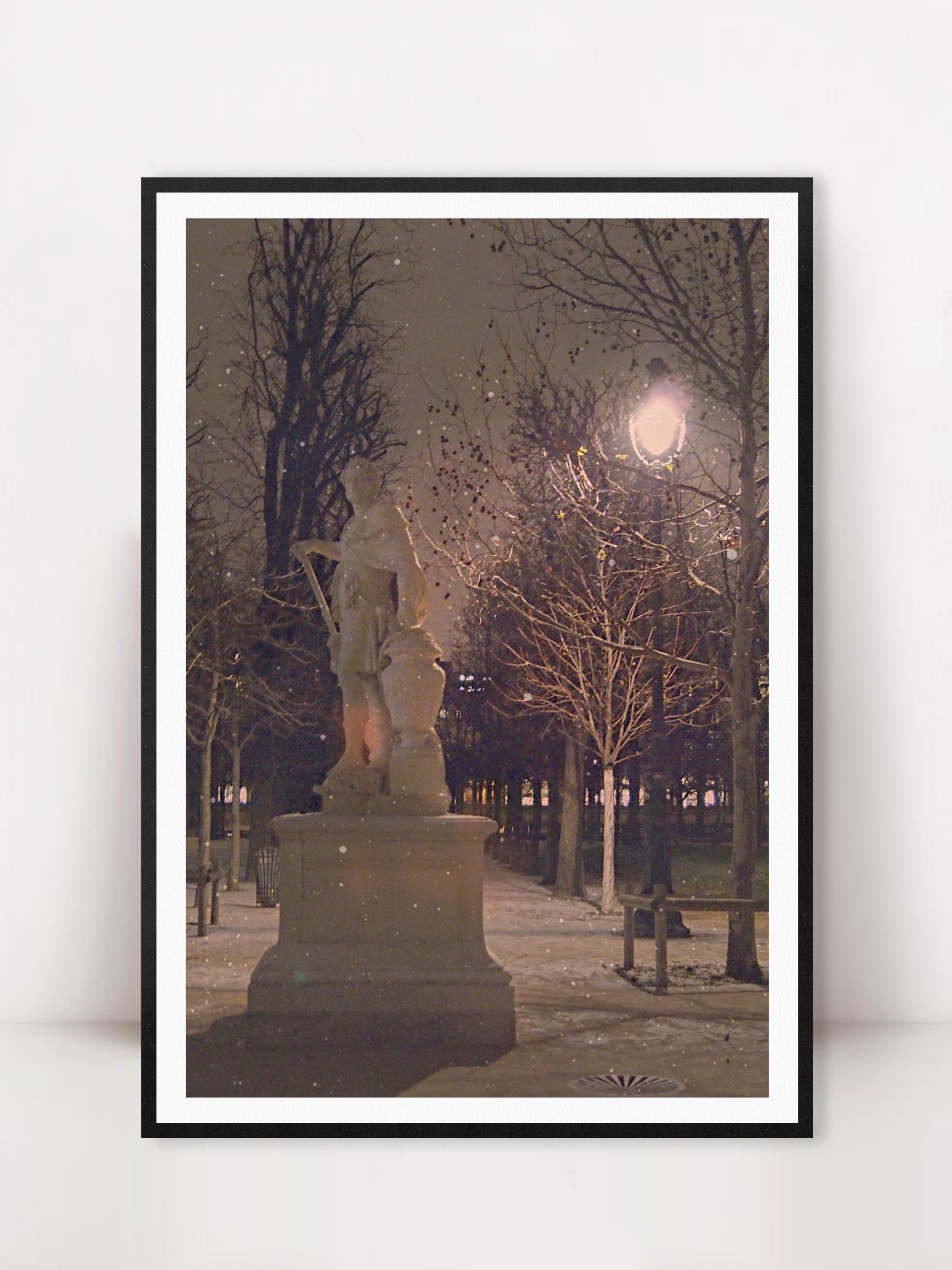Photograph of a Parisian statue at midnight. Printed on premium Fuji Crystal Archive luster paper. Printed, packaged and shipped from San Diego, CA.
