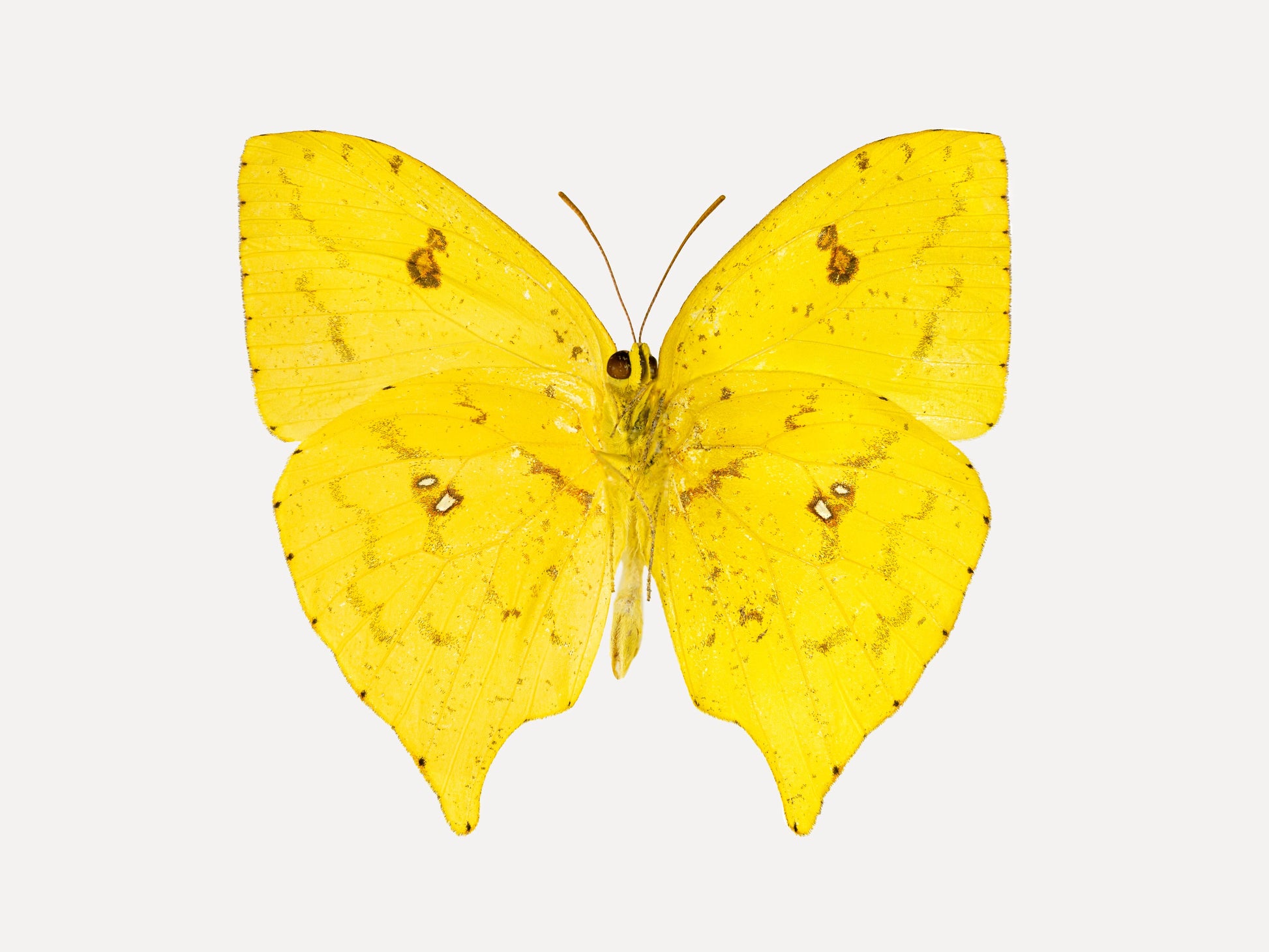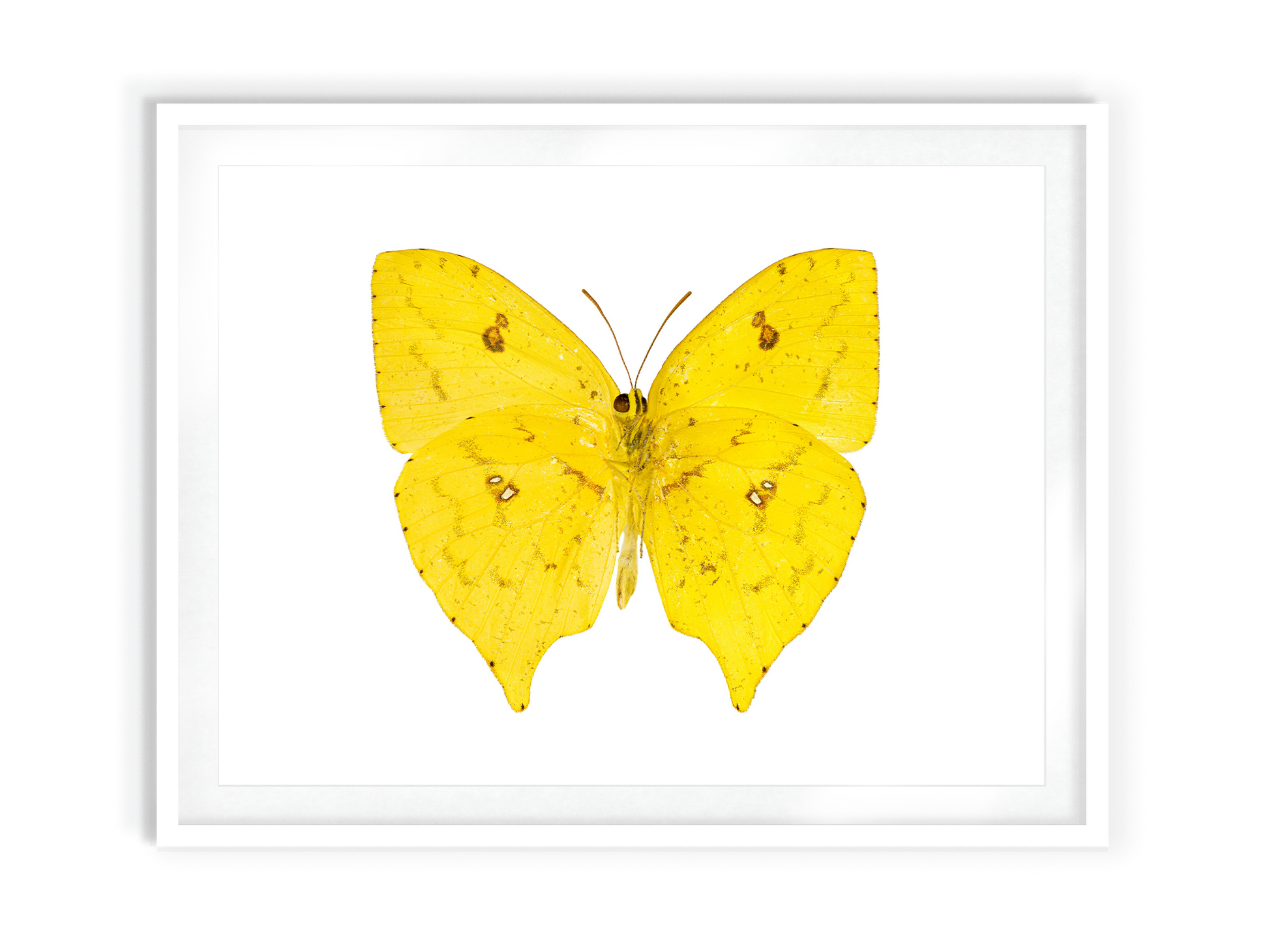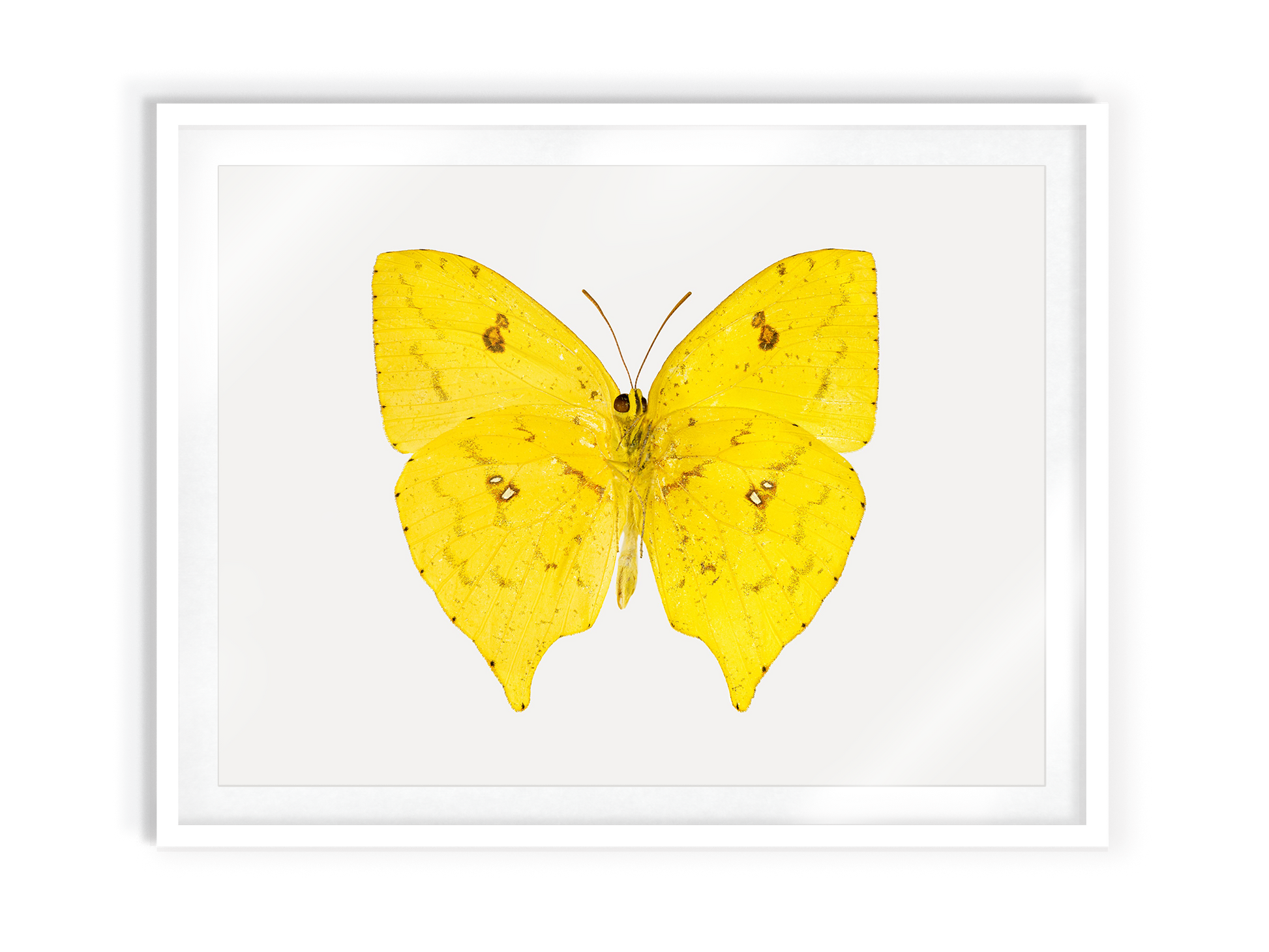 Macro photograph of a Phoebis Philea butterfly specimen from the collection of BioQuipBugs. Printed on premium Fuji Crystal Archive luster paper. Printed and hand packaged in San Diego, CA. A portion of proceeds from the Guimuse Butterfly Collection goes towards the World Wildlife Fund to help protect butterfly habitats.