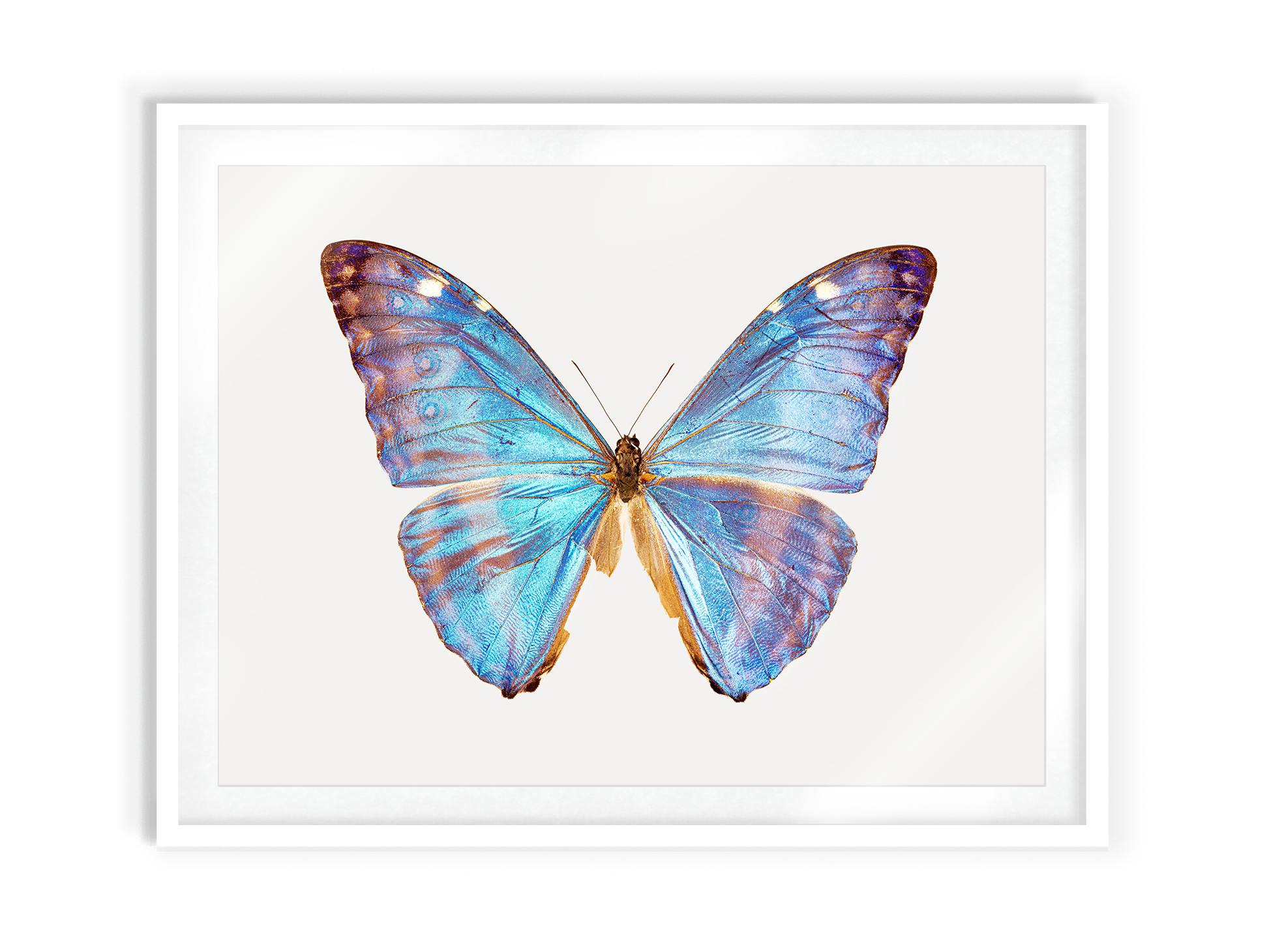 Macro photograph of an Morpho Adonis butterfly specimen from the collection of BioQuipBugs. Printed on premium Fuji Crystal Archive luster paper. Printed and hand packaged in San Diego, CA. A portion of proceeds from the Guimuse Butterfly Collection goes towards the World Wildlife Fund to help protect butterfly habitats.