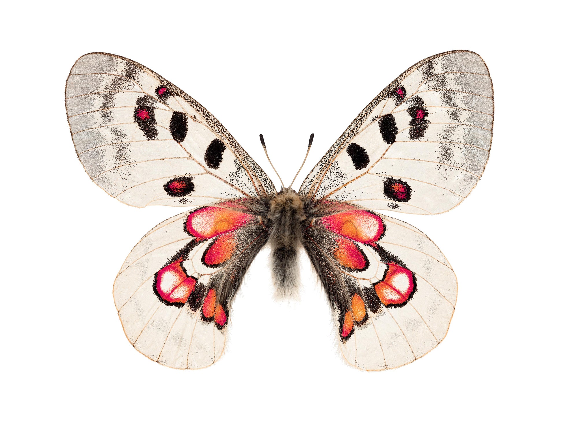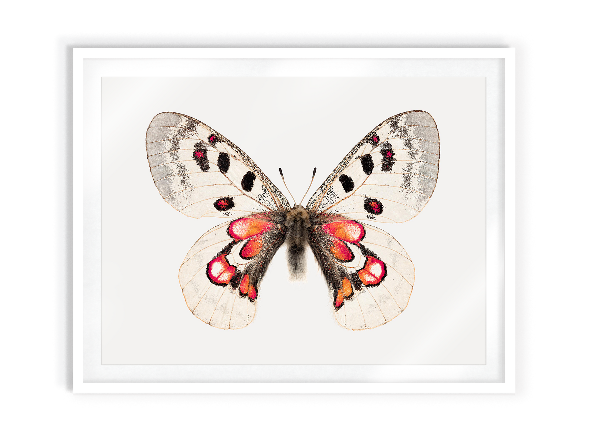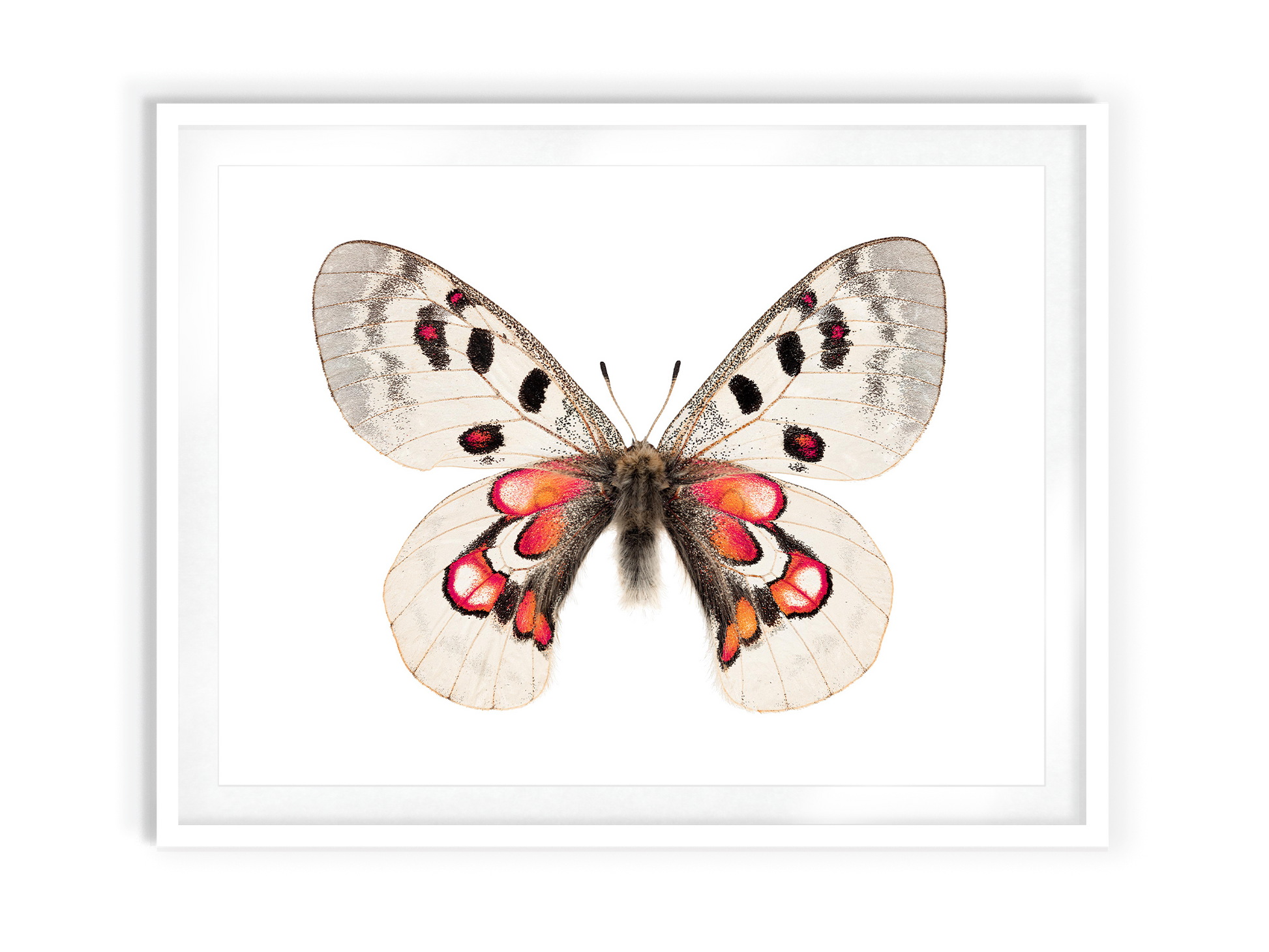 Macro photograph of a Parnassius Nomion butterfly specimen from the collection of BioQuipBugs. Printed on premium Fuji Crystal Archive luster paper. Printed and hand packaged in San Diego, CA. A portion of proceeds from the Guimuse Butterfly Collection goes towards the World Wildlife Fund to help protect butterfly habitats.