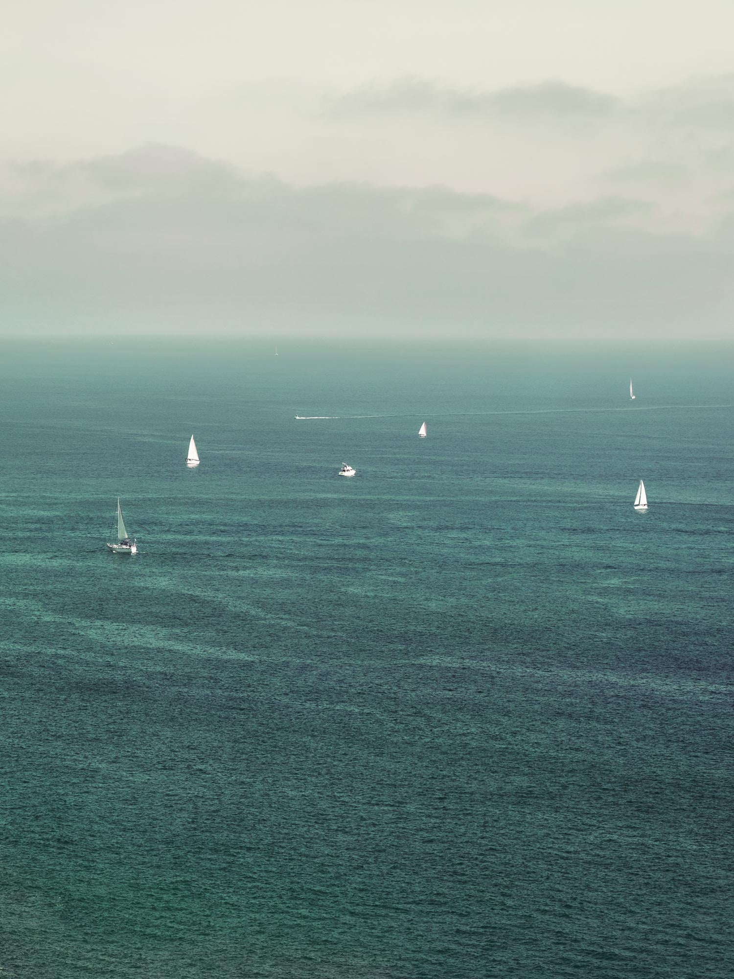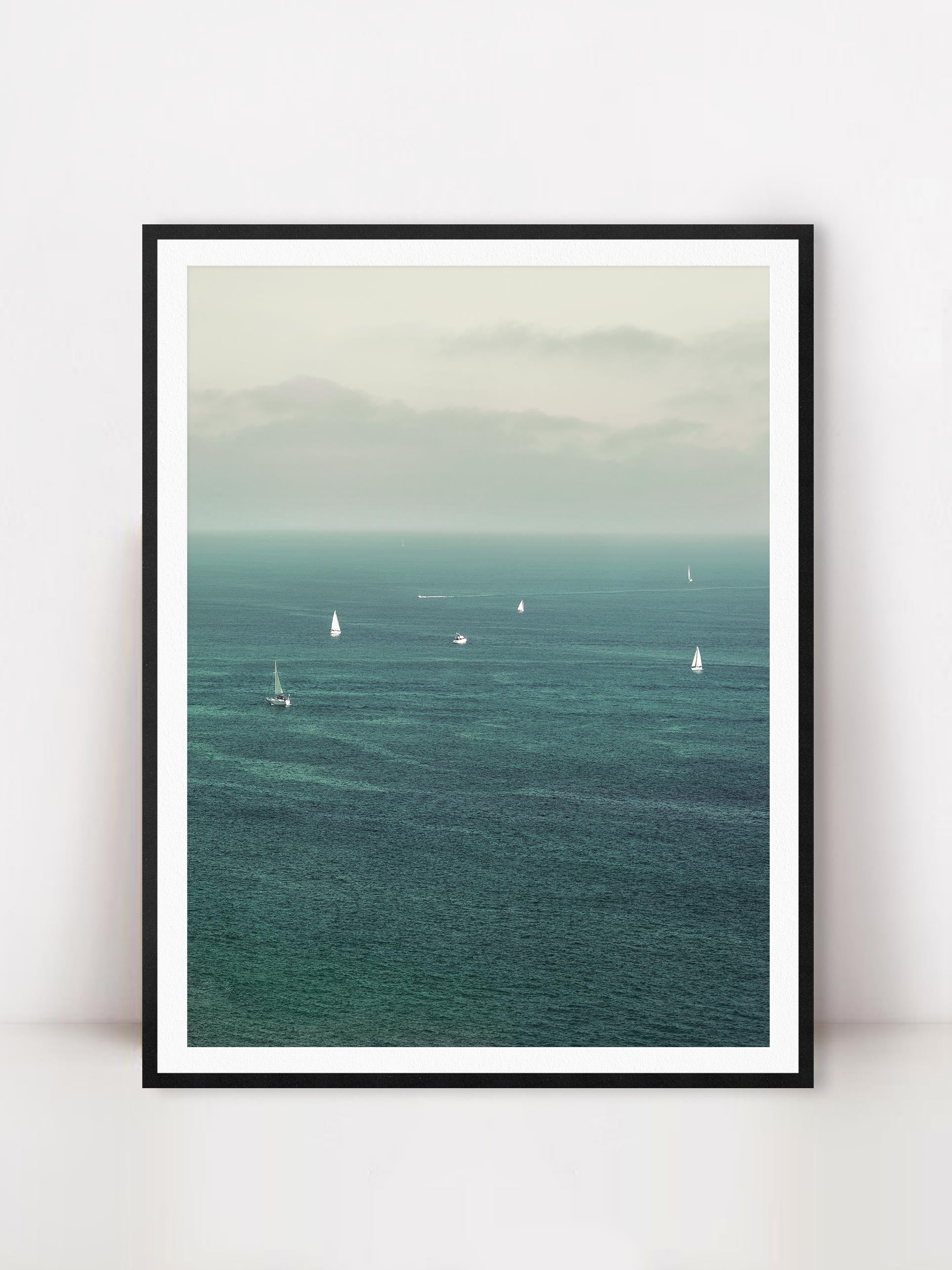 Photograph overlooking boats in the Pacific Ocean. Printed on premium Fuji Crystal Archive luster paper. Printed and hand packaged in San Diego, CA. A portion of proceeds from the Guimuse West Coast Collection goes towards the The Ocean Cleanup to help extract plastic pollution from our oceans.