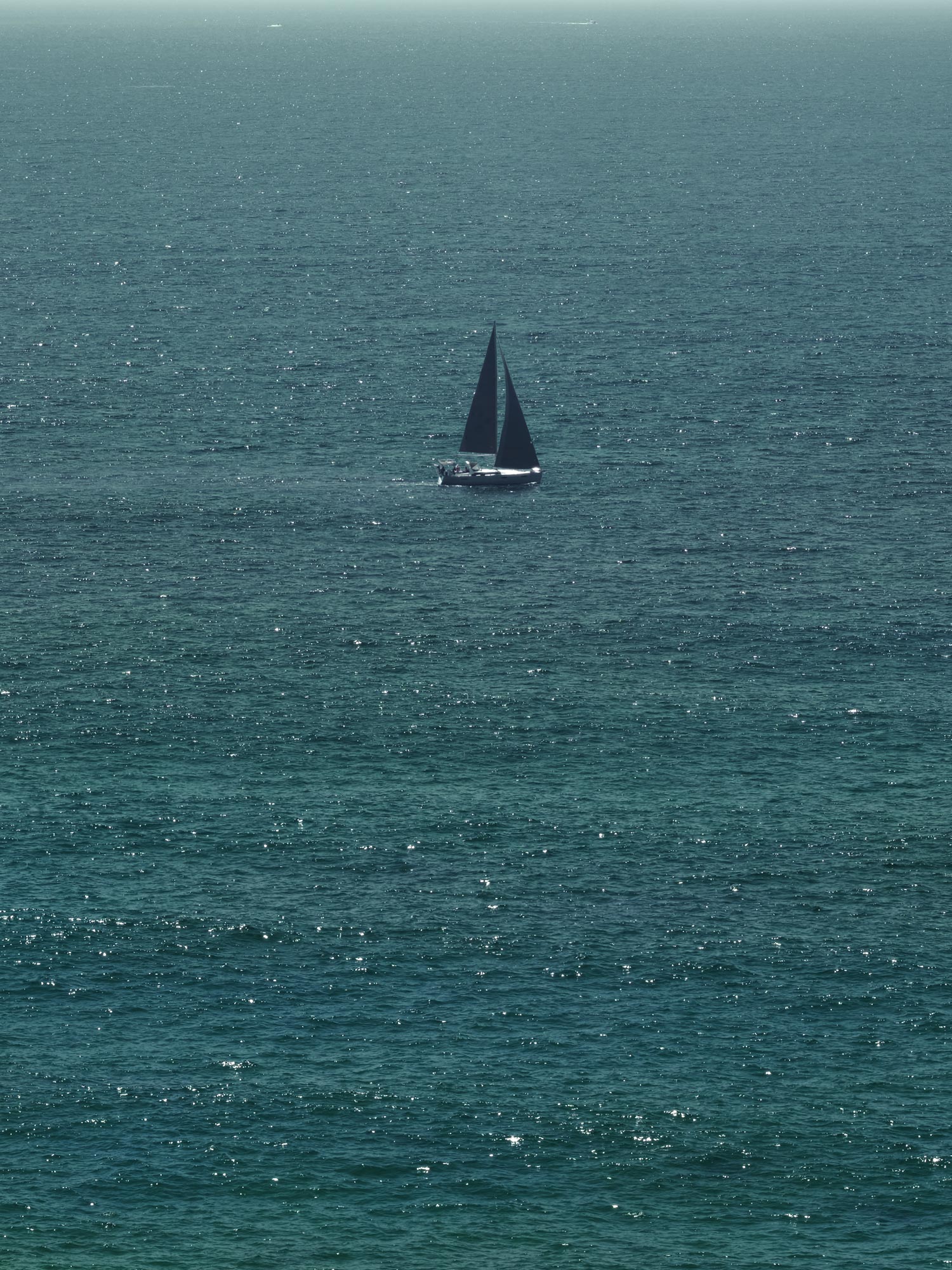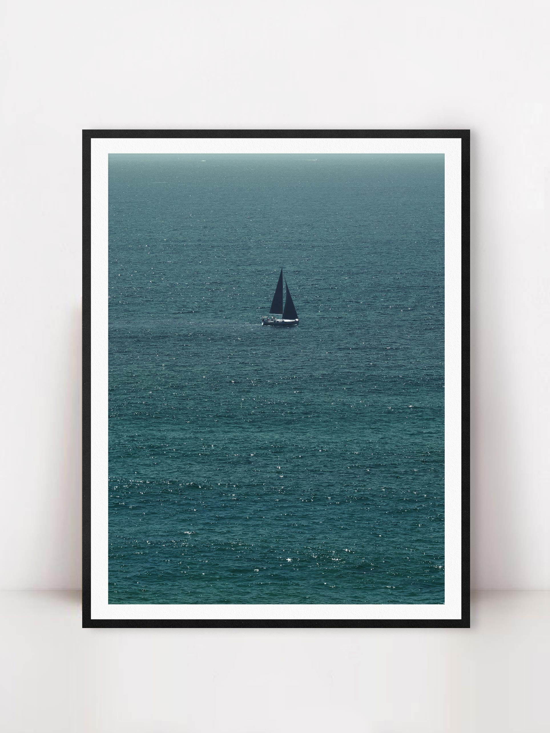 Photograph of a sailboat in the Pacific Ocean, California. Printed on premium Fuji Crystal Archive luster paper. Printed and hand packaged in San Diego, CA. A portion of proceeds from the Guimuse West Coast Collection goes towards the The Ocean Cleanup to help extract plastic pollution from our oceans.