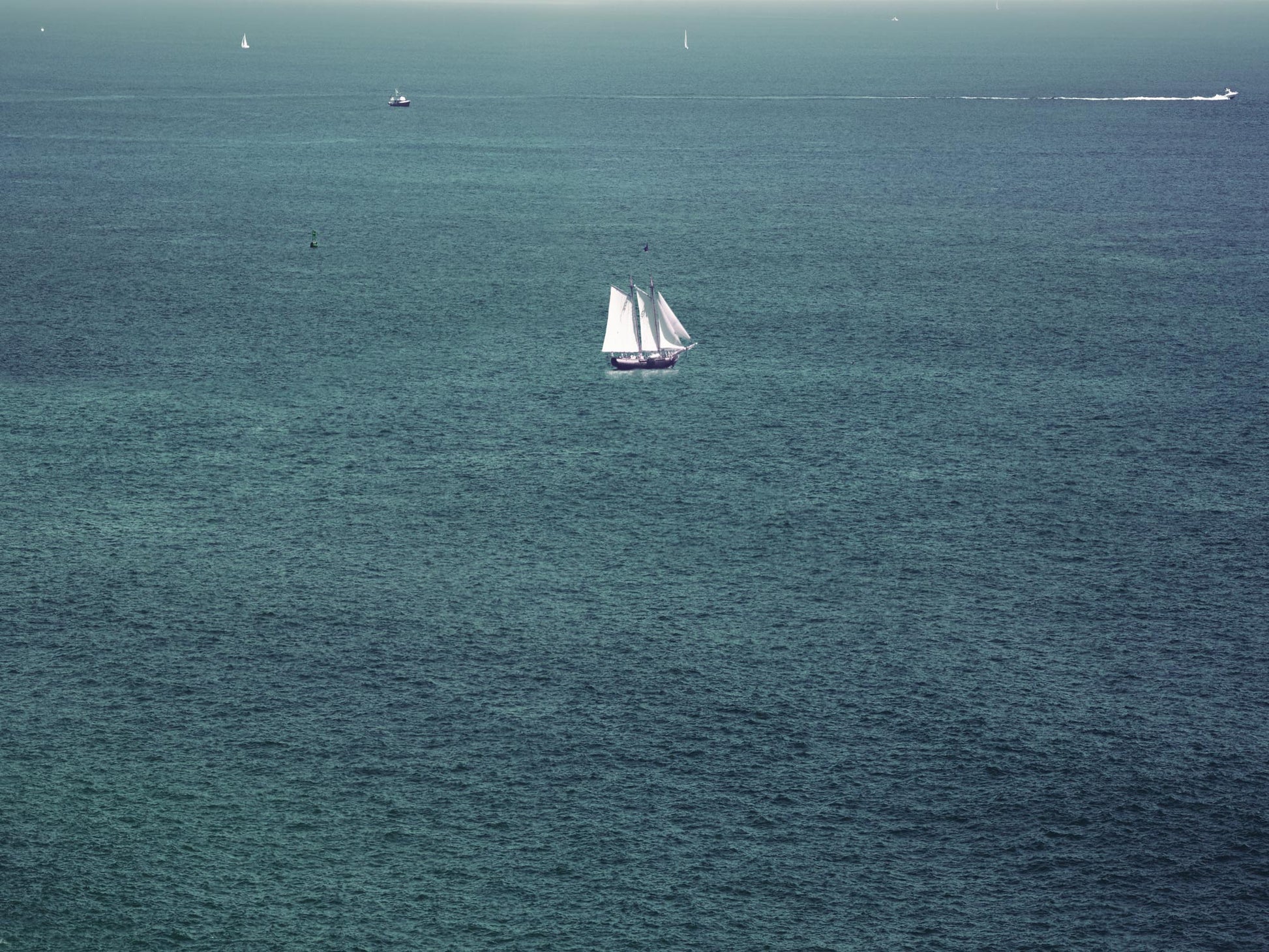 Photograph of "The Spirit of Dana Point" sailing in the Pacific Ocean, California. Printed on premium Fuji Crystal Archive luster paper. Printed and hand packaged in San Diego, CA. A portion of proceeds from the Guimuse West Coast Collection goes towards the The Ocean Cleanup to help extract plastic pollution from our oceans.