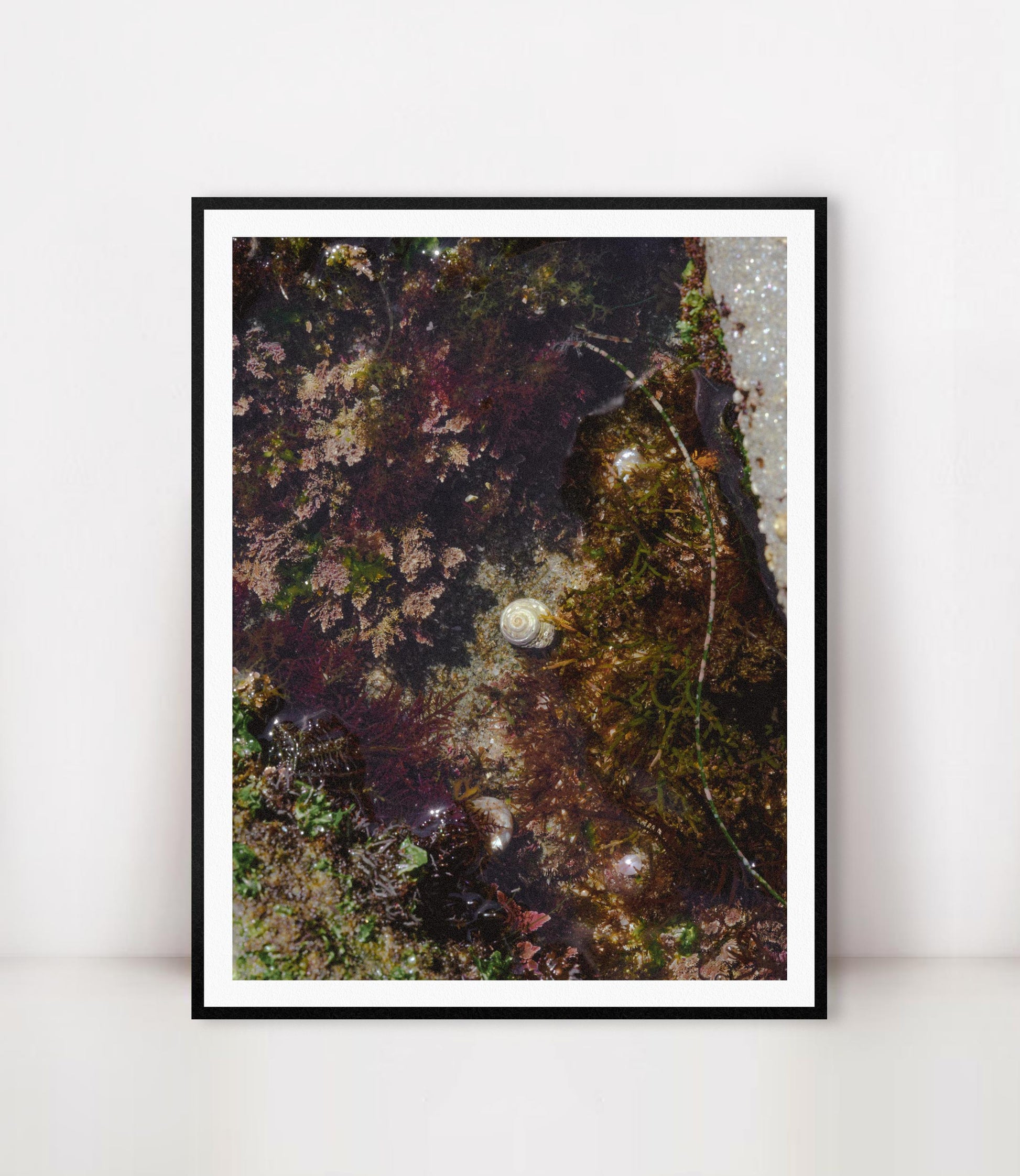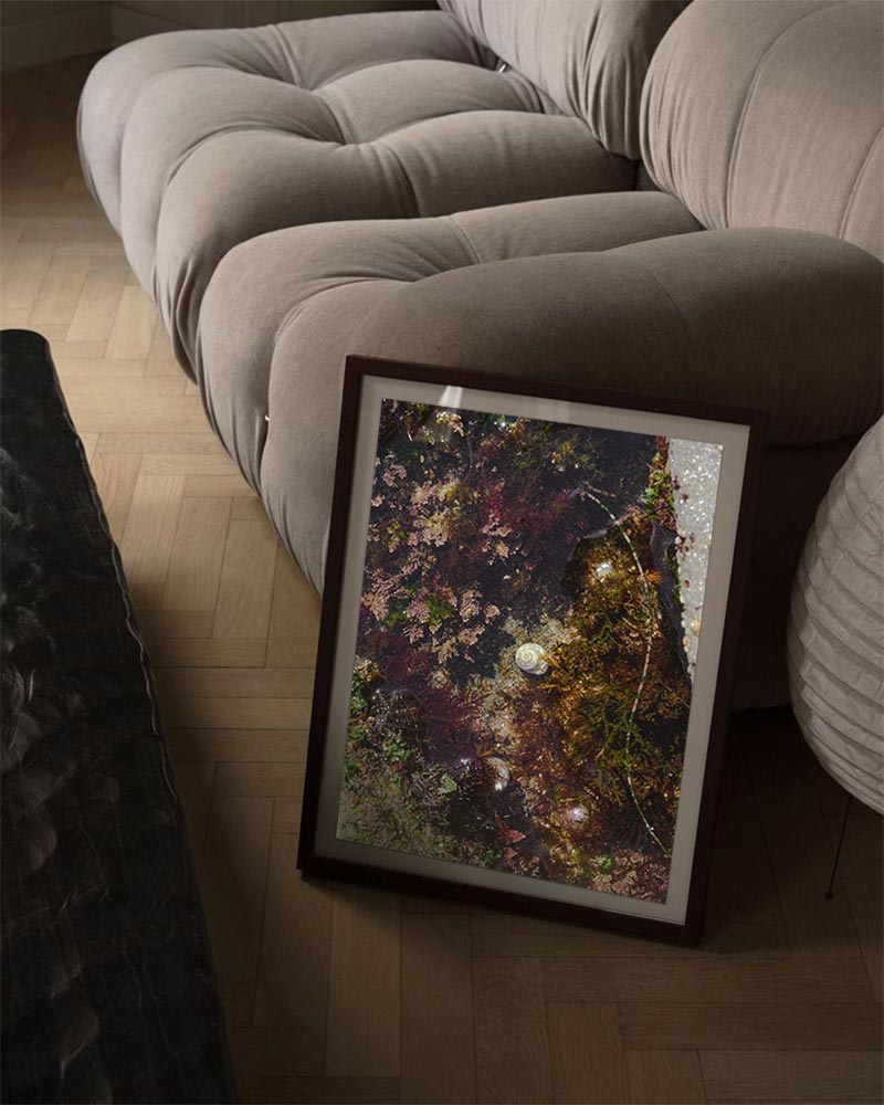 Photograph of shells in a California tide pool. Printed on premium Fuji Crystal Archive luster paper. Printed and hand packaged in San Diego, CA. A portion of proceeds from the Guimuse West Coast Collection goes towards the The Ocean Cleanup to help extract plastic pollution from our oceans.