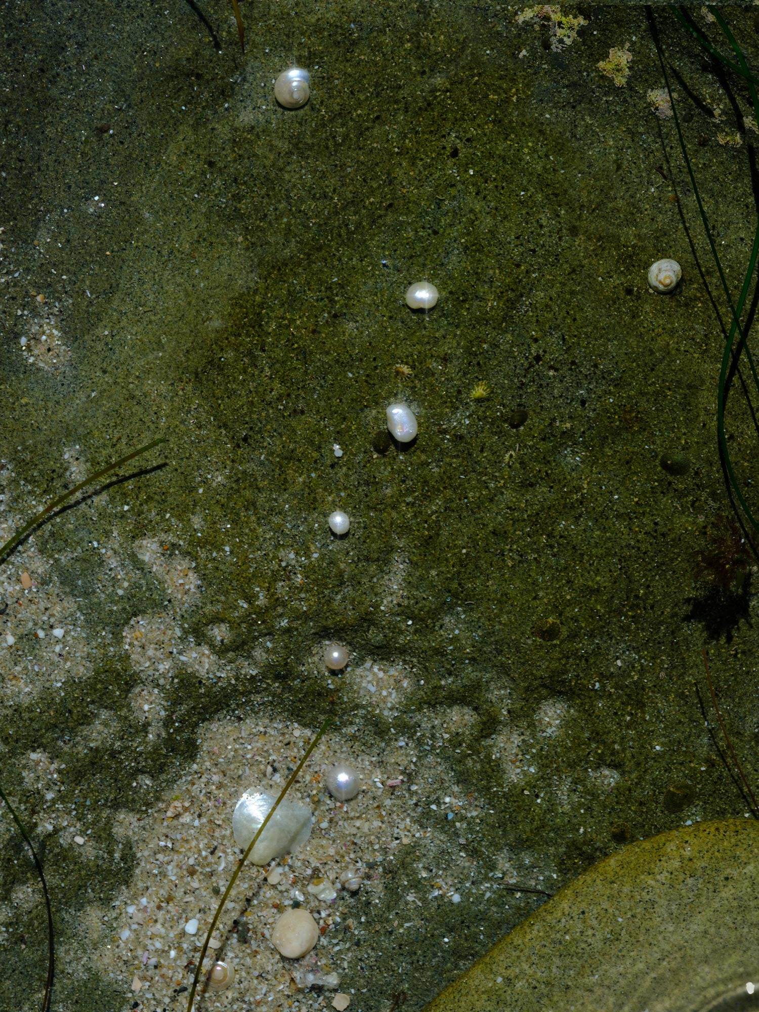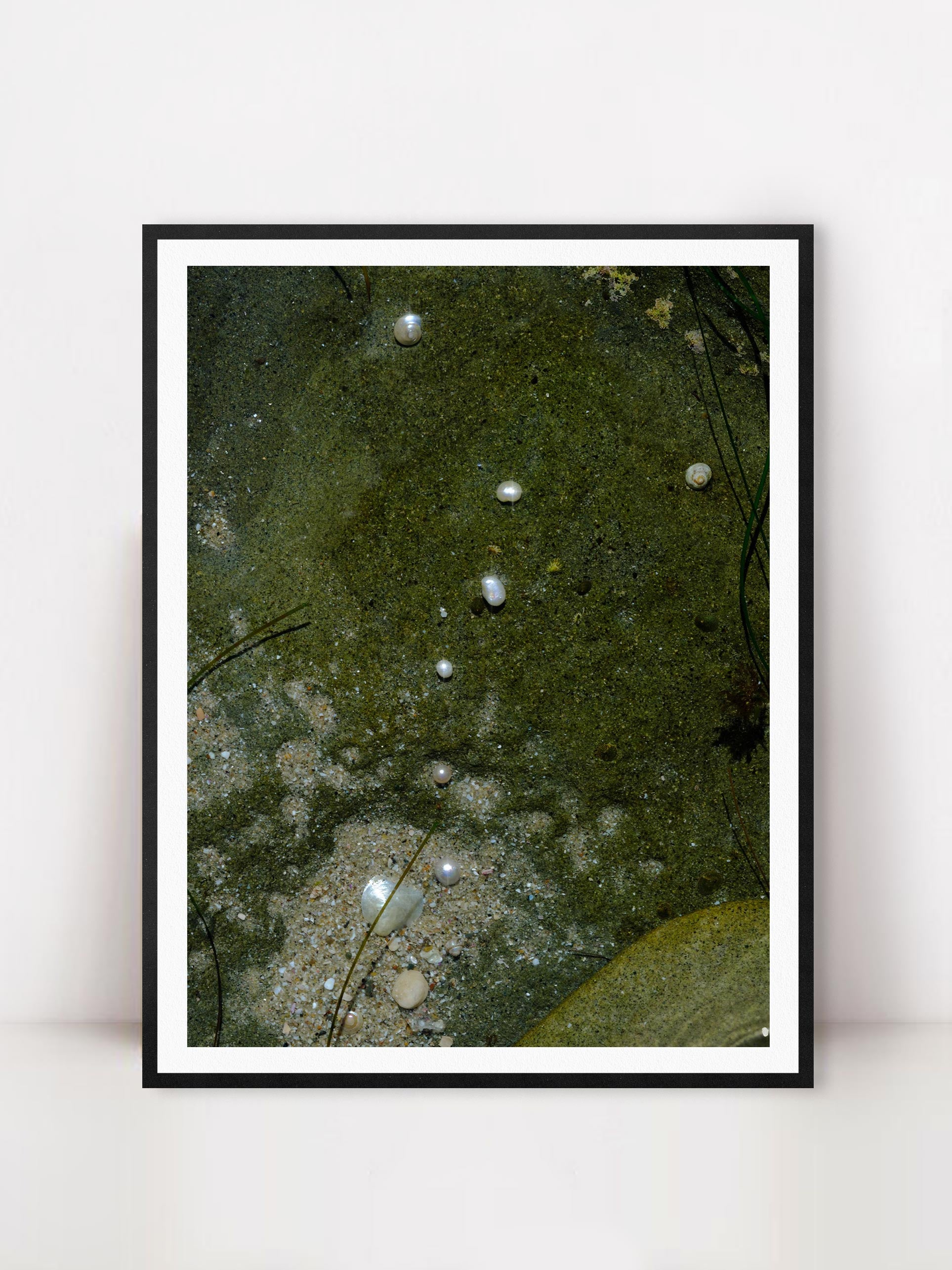 Photograph of pearls in a California tide pool. Printed on premium Fuji Crystal Archive luster paper. Printed and hand packaged in San Diego, CA. A portion of proceeds from the Guimuse West Coast Collection goes towards the The Ocean Cleanup to help extract plastic pollution from our oceans.