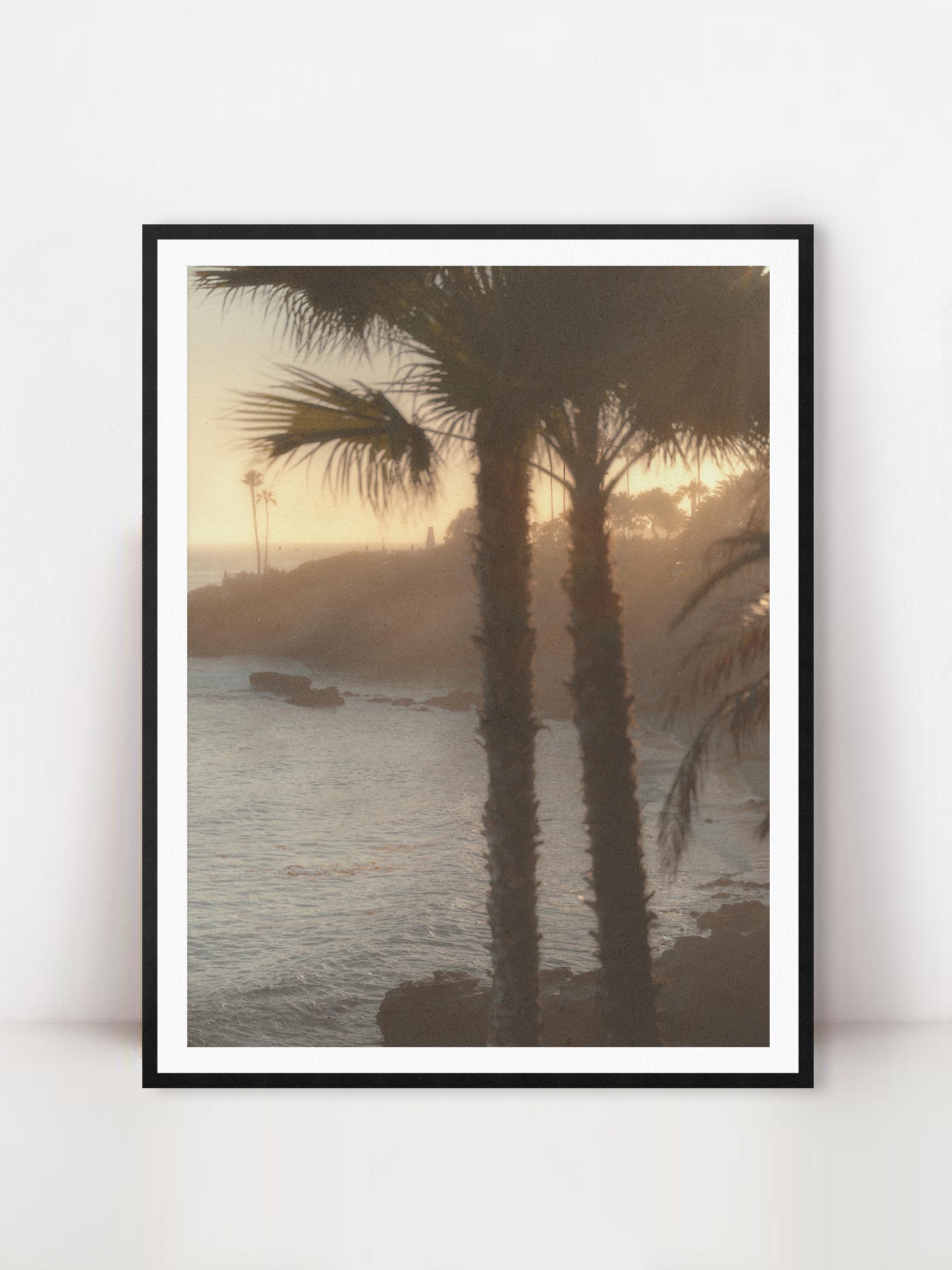 Photograph overlooking a California beach during sunset. Printed on premium Fuji Crystal Archive luster paper. Printed and hand packaged in San Diego, CA. A portion of proceeds from the Guimuse West Coast Collection goes towards the The Ocean Cleanup to help extract plastic pollution from the oceans.