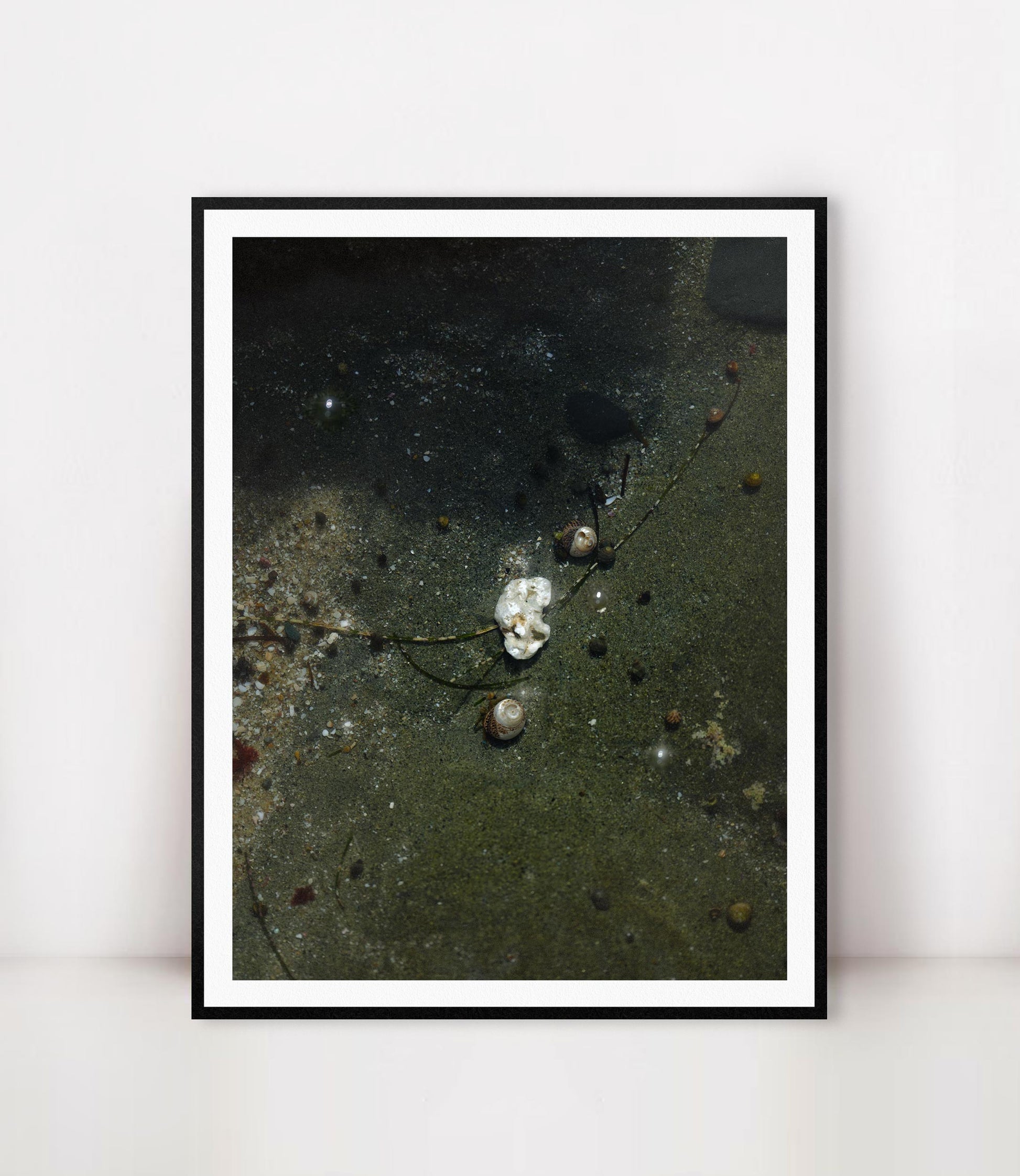 Photograph of a large pearl in a California tide pool. Printed on premium Fuji Crystal Archive luster paper. Printed and hand packaged in San Diego, CA. A portion of proceeds from the Guimuse West Coast Collection goes towards the The Ocean Cleanup to help extract plastic pollution from our oceans.