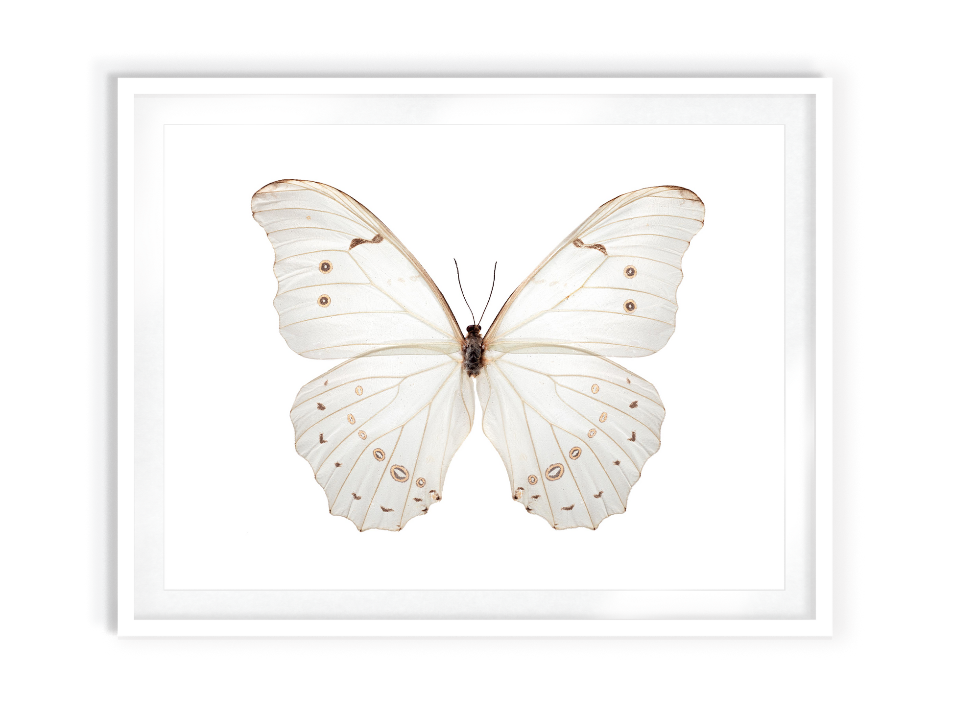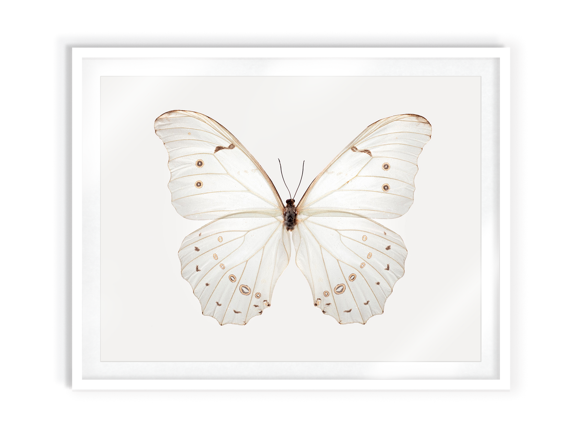 Macro photograph of a Morpho Polyphemus butterfly specimen from the collection of BioQuipBugs. Printed on premium Fuji Crystal Archive luster paper. Printed and hand packaged in San Diego, CA. A portion of proceeds from the Guimuse Butterfly Collection goes towards the World Wildlife Fund to help protect butterfly habitats.