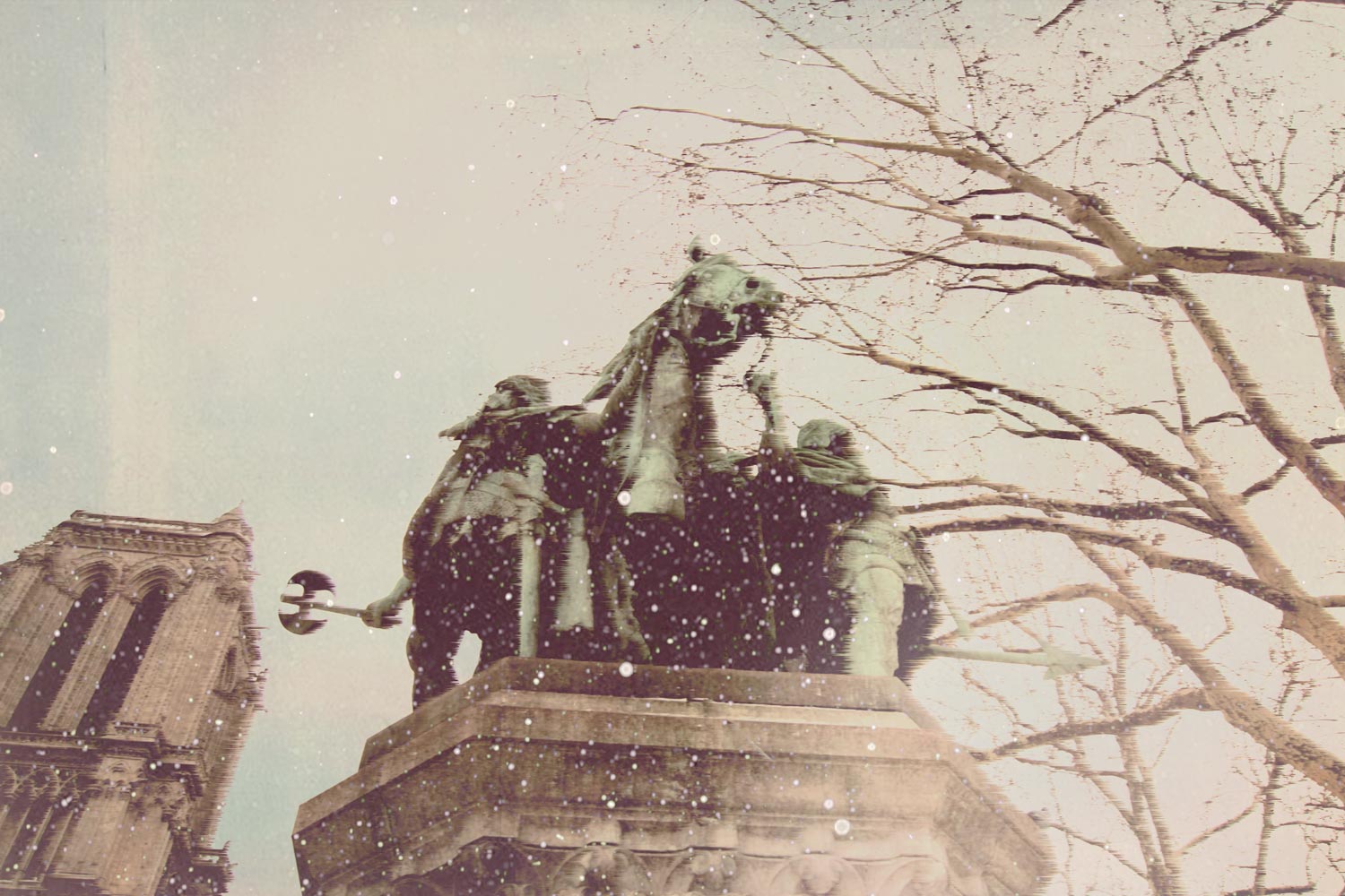Photograph of the Parisian statue "Charlemagne et ses Leudes" in front of the Notre-Dame. Printed on premium Fuji Crystal Archive luster paper. Printed, packaged and shipped from San Diego, CA.