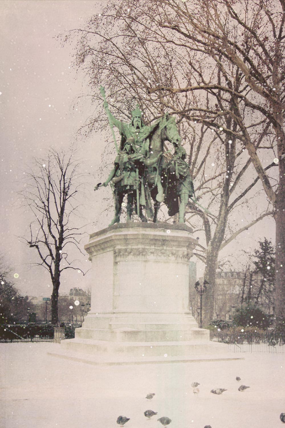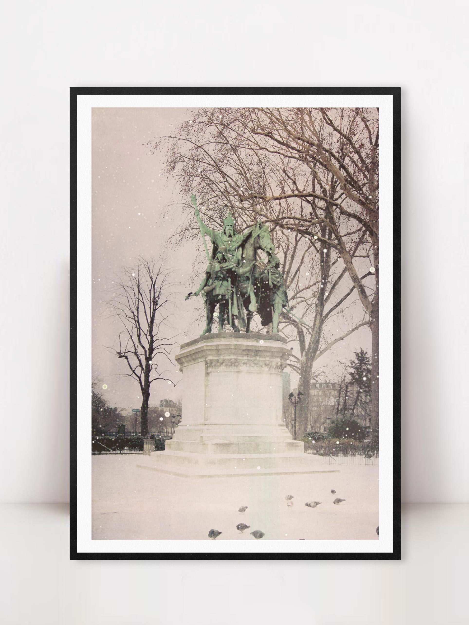 Photograph of the Parisian statue "Charlemagne et ses Leudes" in front of the Notre-Dame.  Printed on premium Fuji Crystal Archive luster paper. Printed, packaged and shipped from San Diego, CA.